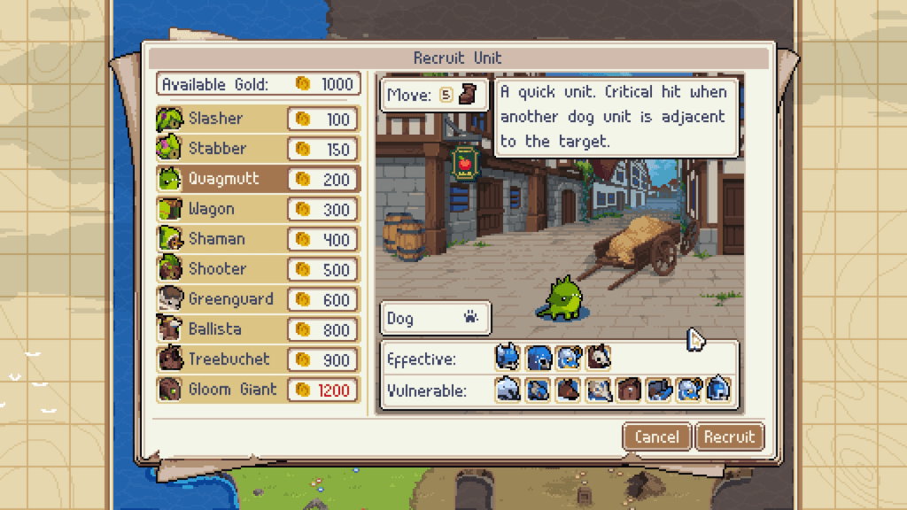 The final two things I’m going to mention have already been highlighted in a blog post made by Chucklefish shortly after launch. In the game’s current state the results screen after a mission doesn’t clearly convey what needs to be done to get an S ranking. In addition, the vulnerabilities chart is incredibly difficult to read because low res images of unit faces are used instead of standardized symbols to represent each unit. Both are planned to be fixed in the short term but immediately jumped out within my first hour of playing Wargroove.