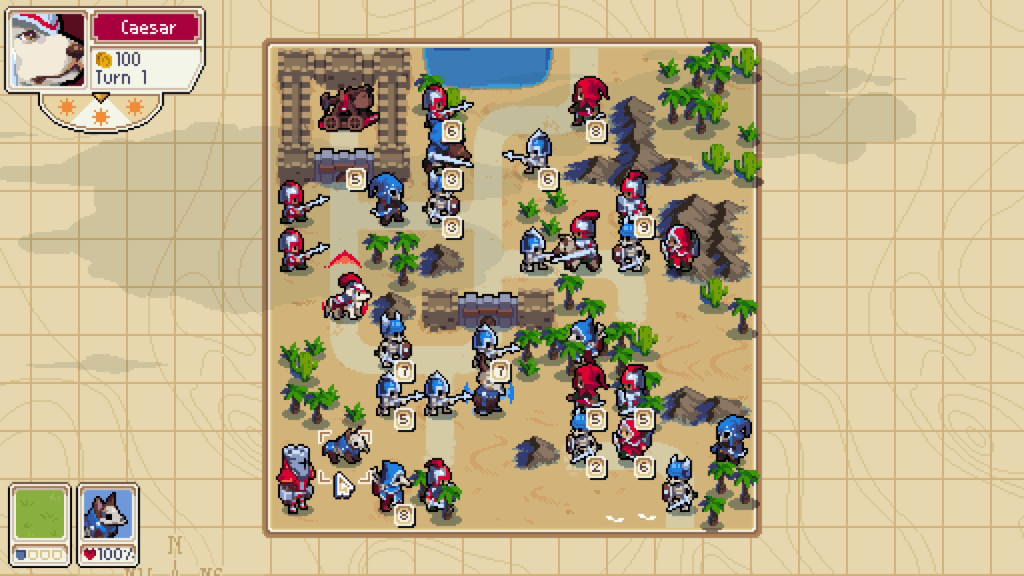 Firstly, let’s dive into what hasn’t changed. Players control a group of units, and choose where they move as well as additional contextual actions. This can include attacking nearby enemy units, or capturing settlements to secure additional resources at the start of every turn. Maps are made up of different tiled environments which feature defensive bonuses. Open roads, and rivers leave soldiers exposed, while forests and mountains offer greater protection. The key to victory is considering where units are placed, as attacking from more defensive environments will help sustain the long road to victory.