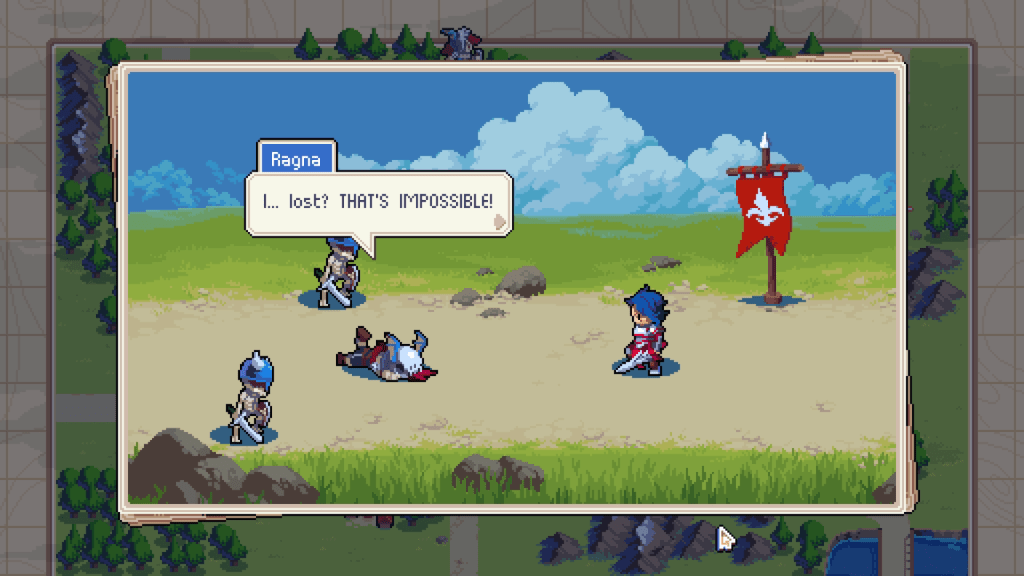 The campaign also suffers from a lackluster story. The focus of Wargroove was very clearly put into the tactical gameplay, which is fine, but the story makes the campaign a bit of a slog. Most of the game’s cast is very serious, which makes them feel like a group of wet blankets. Were it not for characters like the sassy Nuru, or boisterous Ragna providing occasional bits of comic relief it’d have bordered on unbearable.