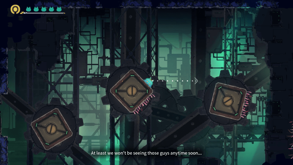 I think the thing that I find the most curious about MO is how it handles difficulty. There are three options to choose from and each ramps up the intensity of the puzzles and the platforming on offer. Not many games re-design entire segments to accommodate different levels of skill and I think that’s pretty rad. And I’m not just saying that just for accessibility. I really appreciated having an extremely hard version of the game to play through that lined up with my own platforming ability.