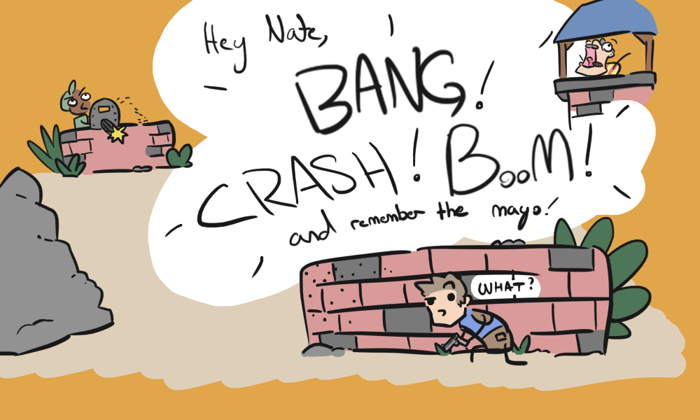 This ultimately didn’t matter much because I was so focused on trying to shoot baddies that I wasn’t able to receive what was being said. Humans are notoriously bad at multi-tasking, so if we’re hyper focused on one thing then we’re probably not paying attention to other stimulus. Never mind that sound design often makes it impossible to hear what characters are saying.