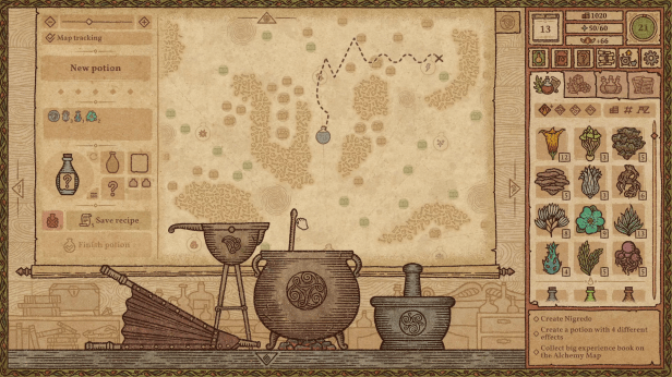 Once you’ve set your desired path, you’ll have to stir your dubious soup to follow it. It’s also worth noting that you don’t have to create your full whole route all at once. Making potions in Potion Craft is a lot like cooking – you can change course by adding additional ingredients. You’re never completely committed to your path.