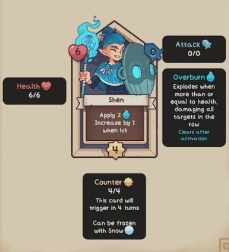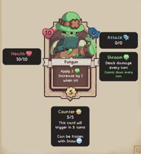 Snow is easily the strongest status effect in Wildfrost. It completely incapacitates a minion, freezes its turn timer, and nullifies both Trigger, and Smackback effects. This kind of crowd-control is so powerful that numerous enemies have the ability to reduce the effects of Snow. You know something is busted when the developers had to give partial immunity to key enemies, otherwise players could completely bulldoze through Wildfrost.