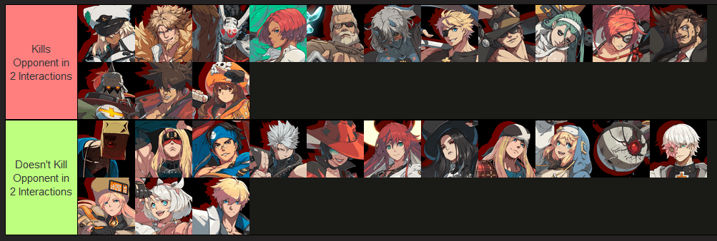 As you can see, this tier list has a very narrow perspective on Guilty Gear Strive. A common complaint about the game for almost its entire existence has been that characters deal too much damage. Well – okay that’s not entirely true. The complaint is that some characters deal too much damage. This can lead to matches having a lot of volatility, which is a huge point of consternation for a very vocal contingent of the Strive player base.